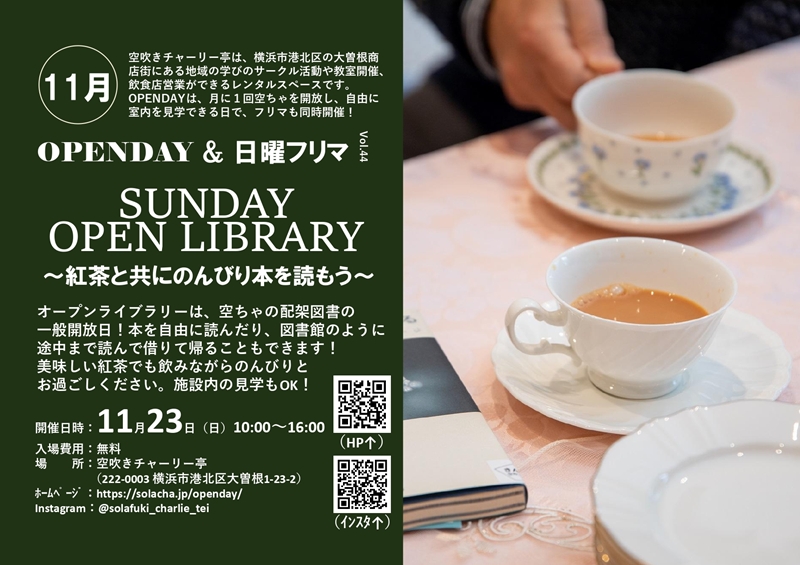 空吹きチャーリー亭は、横浜市港北区の大曽根商店街にある地域の学びのサークル活動や教室開催、飲食店営業、菓子製造業ができるレンタルスペースです。 11月のOPENDAYの概要-2025.11.23(日) 今月のオープンデイ […]