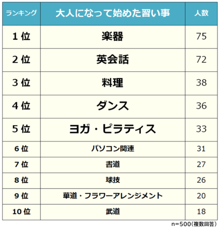 男女500人に聞いた「大人になってから始めた習い事」は、