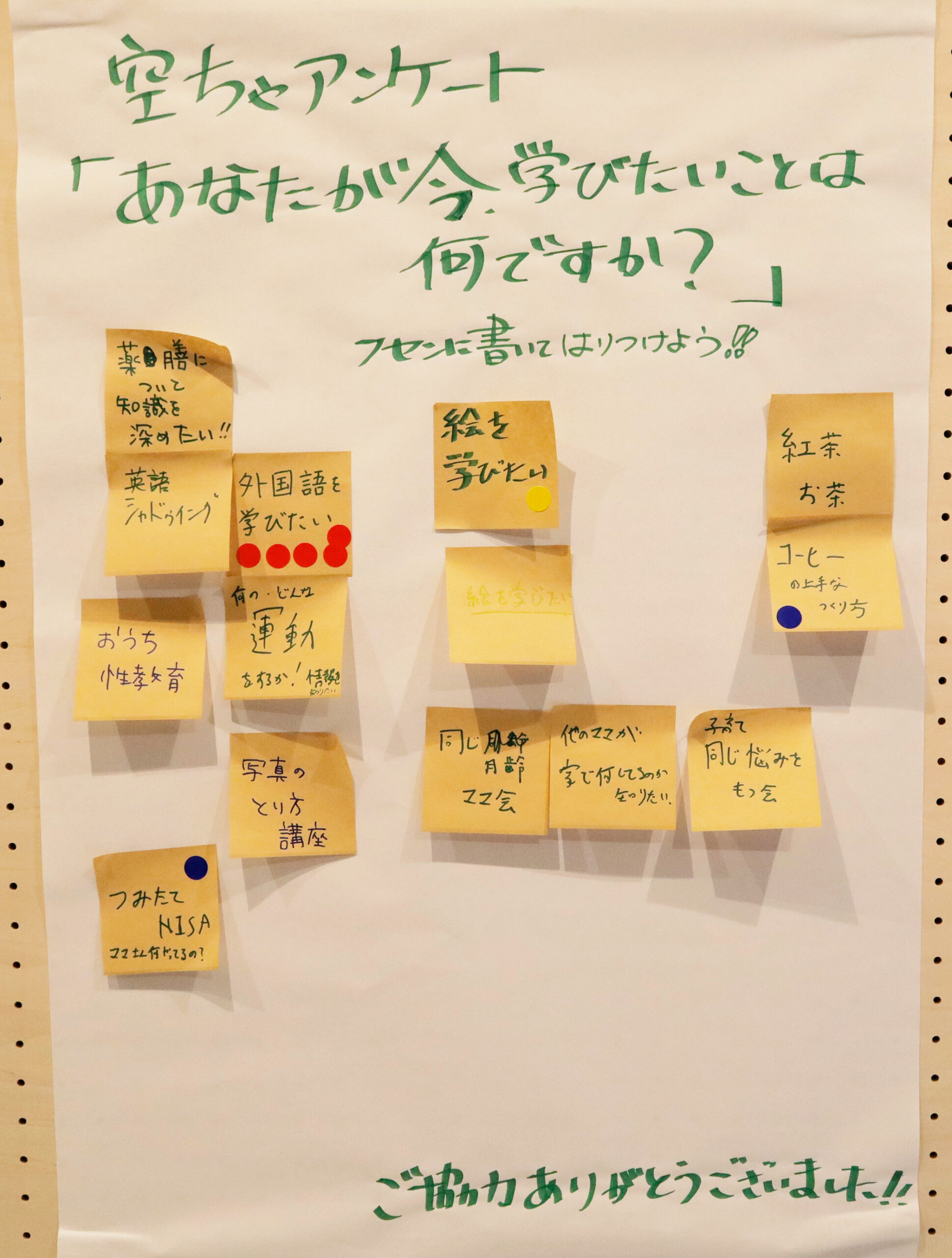 空吹きチャーリー亭で毎月実施しているオープンデイでも、近隣の方々に「あなたが今、学びたいことは何ですか?」というアンケートをとってみました。
