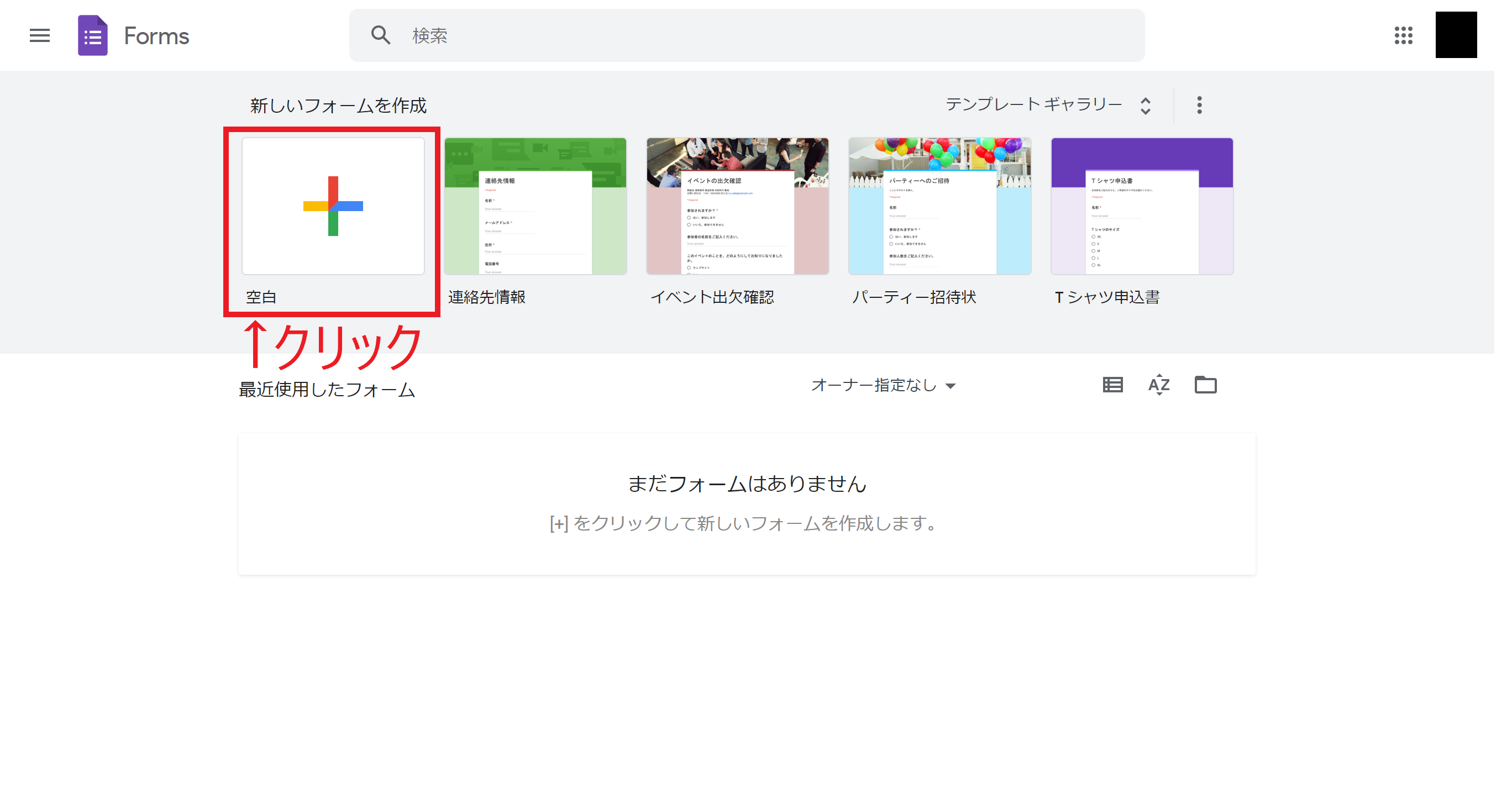 まず始めに、Googleフォーム作成のURLにアクセスします。