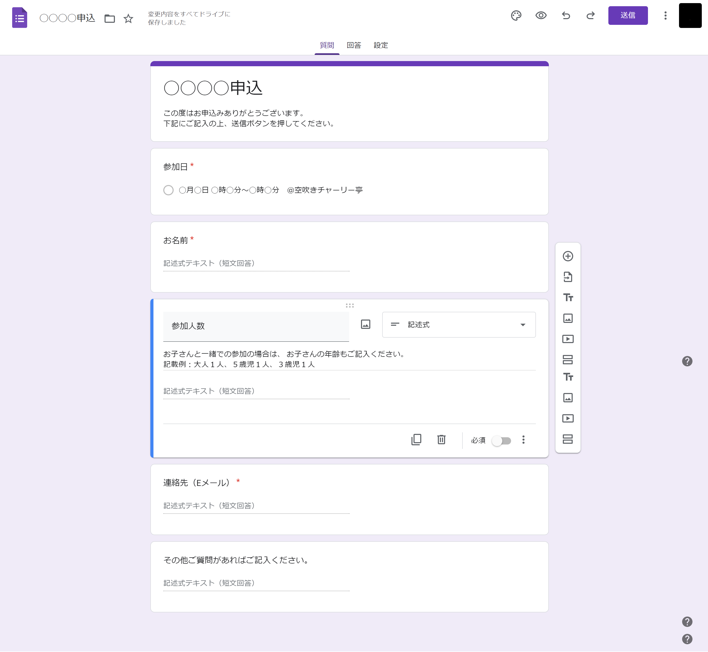 Googleフォームの入力の際に、少し迷う部分を画像を踏まえて補足説明します。