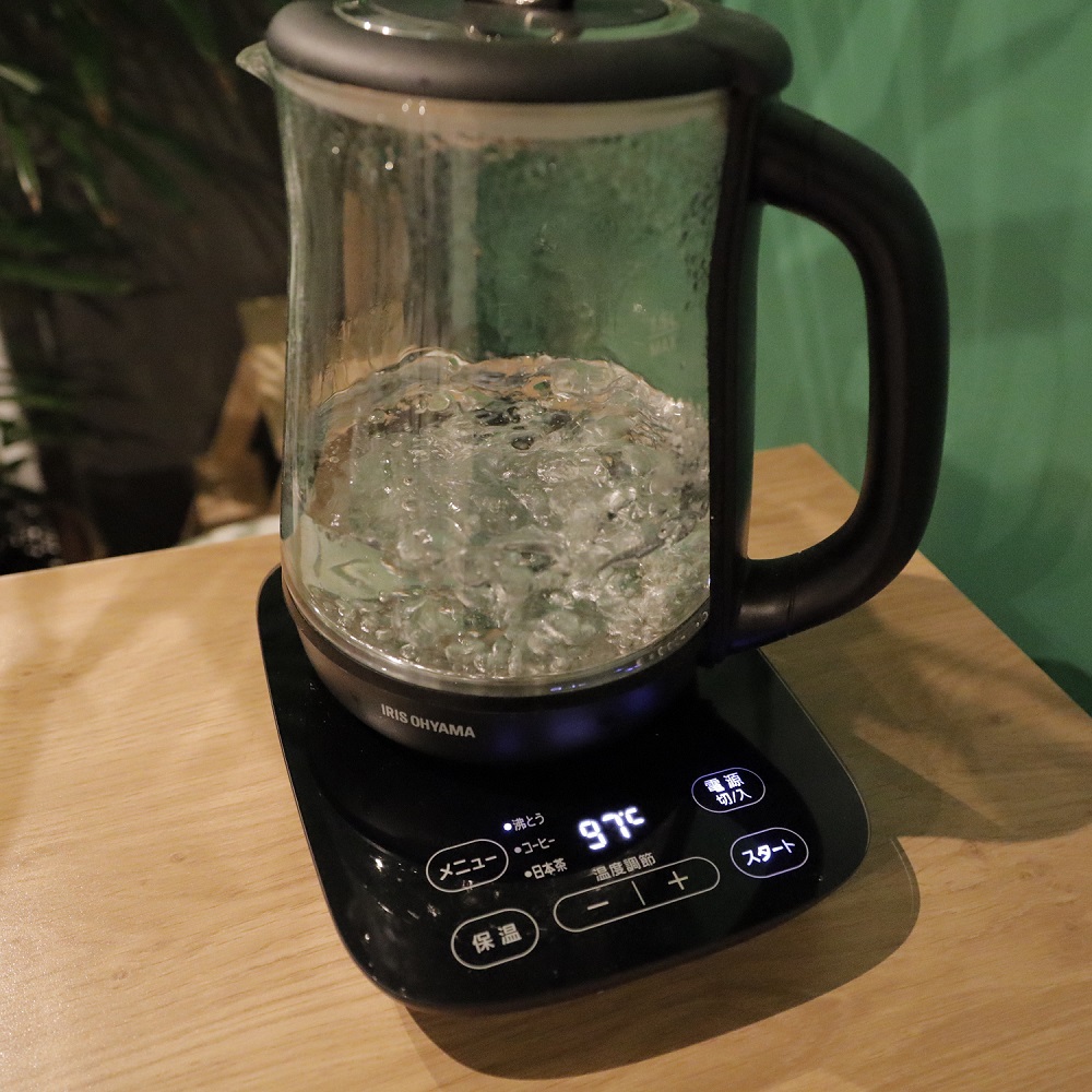 温度設定もできるので、紅茶、コーヒー、日本茶とそれぞれ異なる温度を設定して、お湯を沸かすことができます。