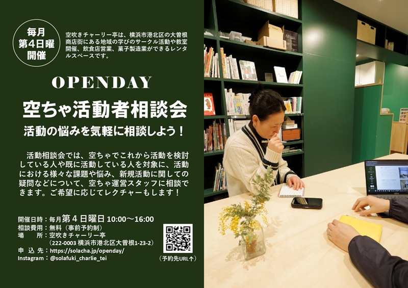 お試し活動の場所は、近くの公共施設の会議室でも良いですし、空ちゃもお試し利用は無料となりますので、お気軽にお問合せください。