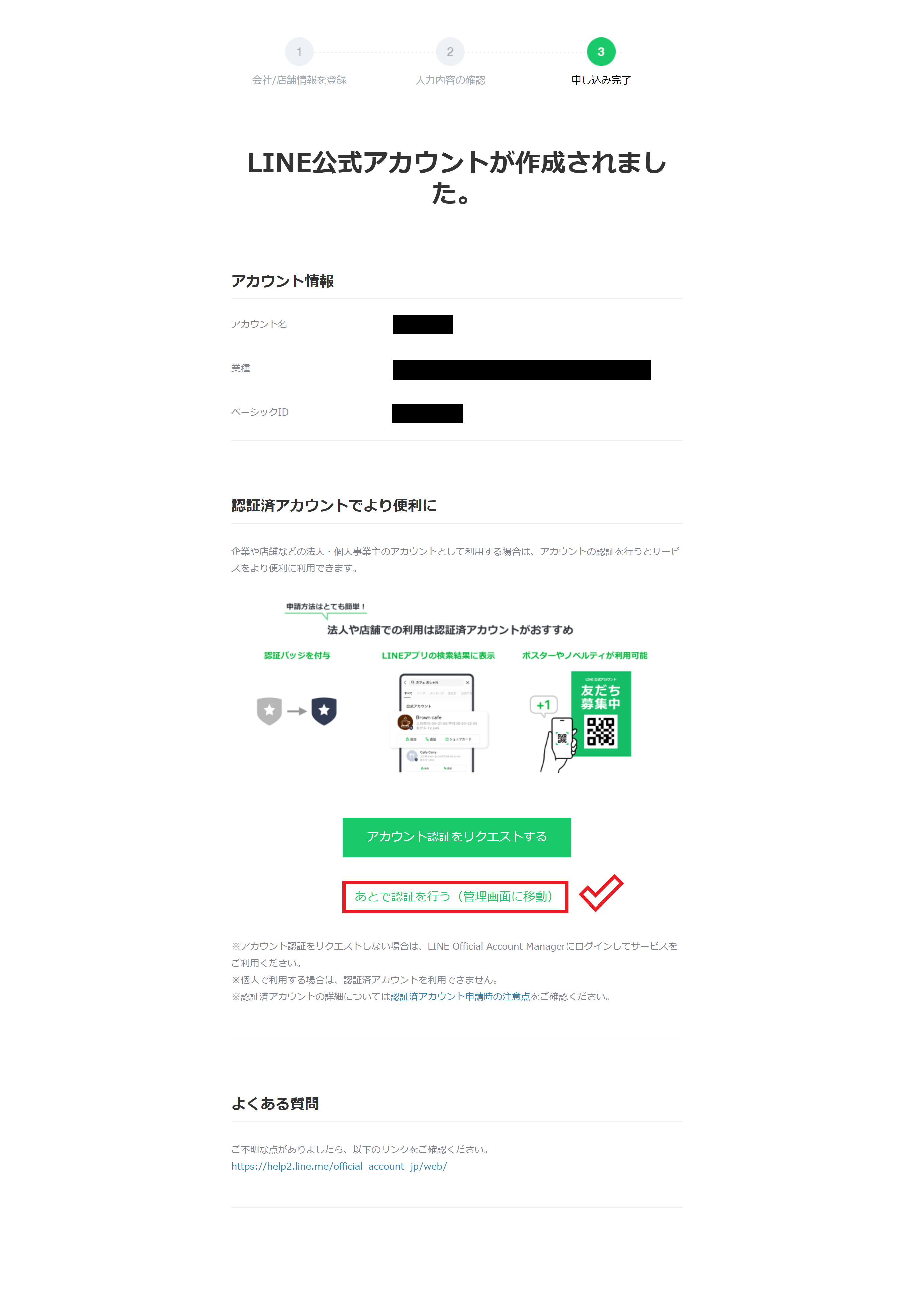 ここまでが、LINE公式アカウントの開設手順となります。