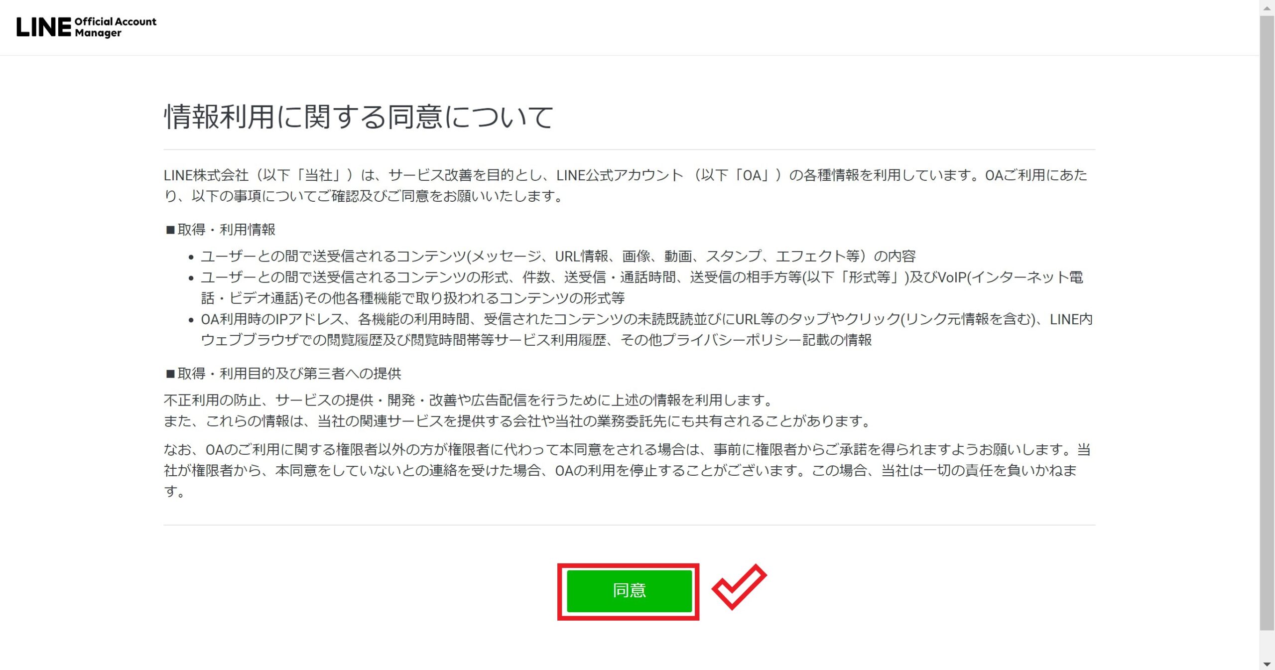 情報利用に関する同意事項を確認したら「同意」をクリックします。