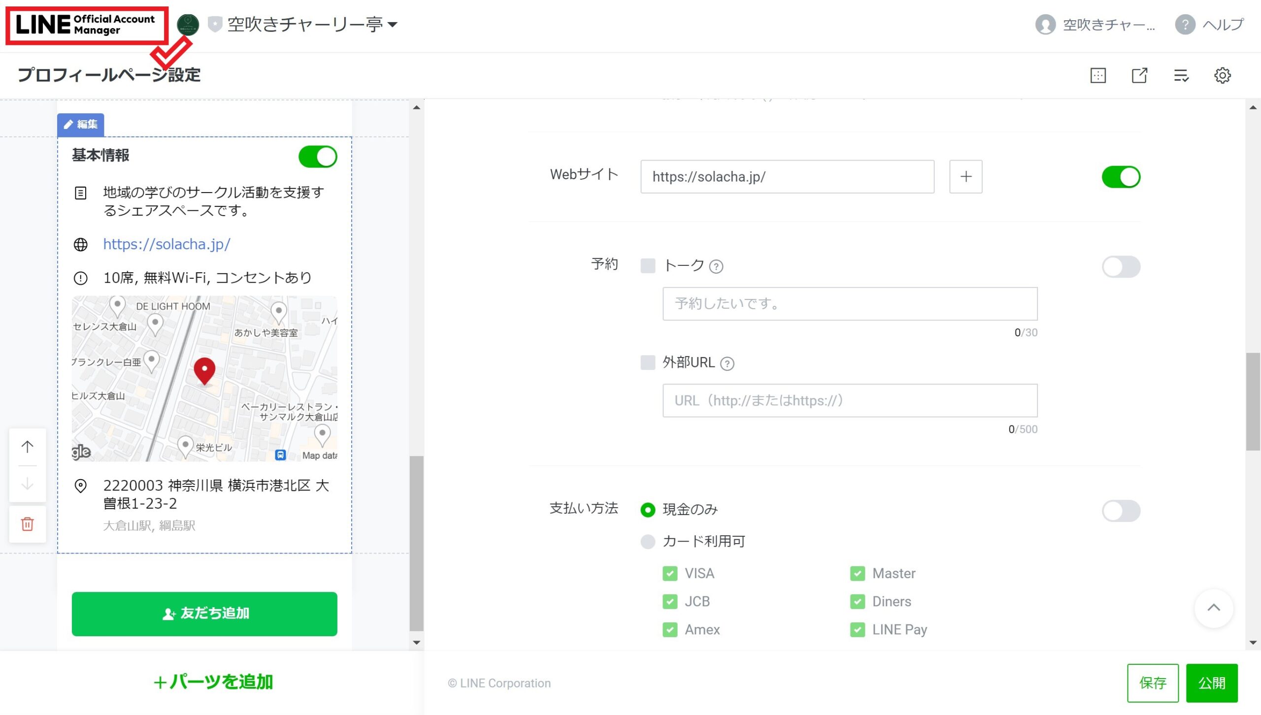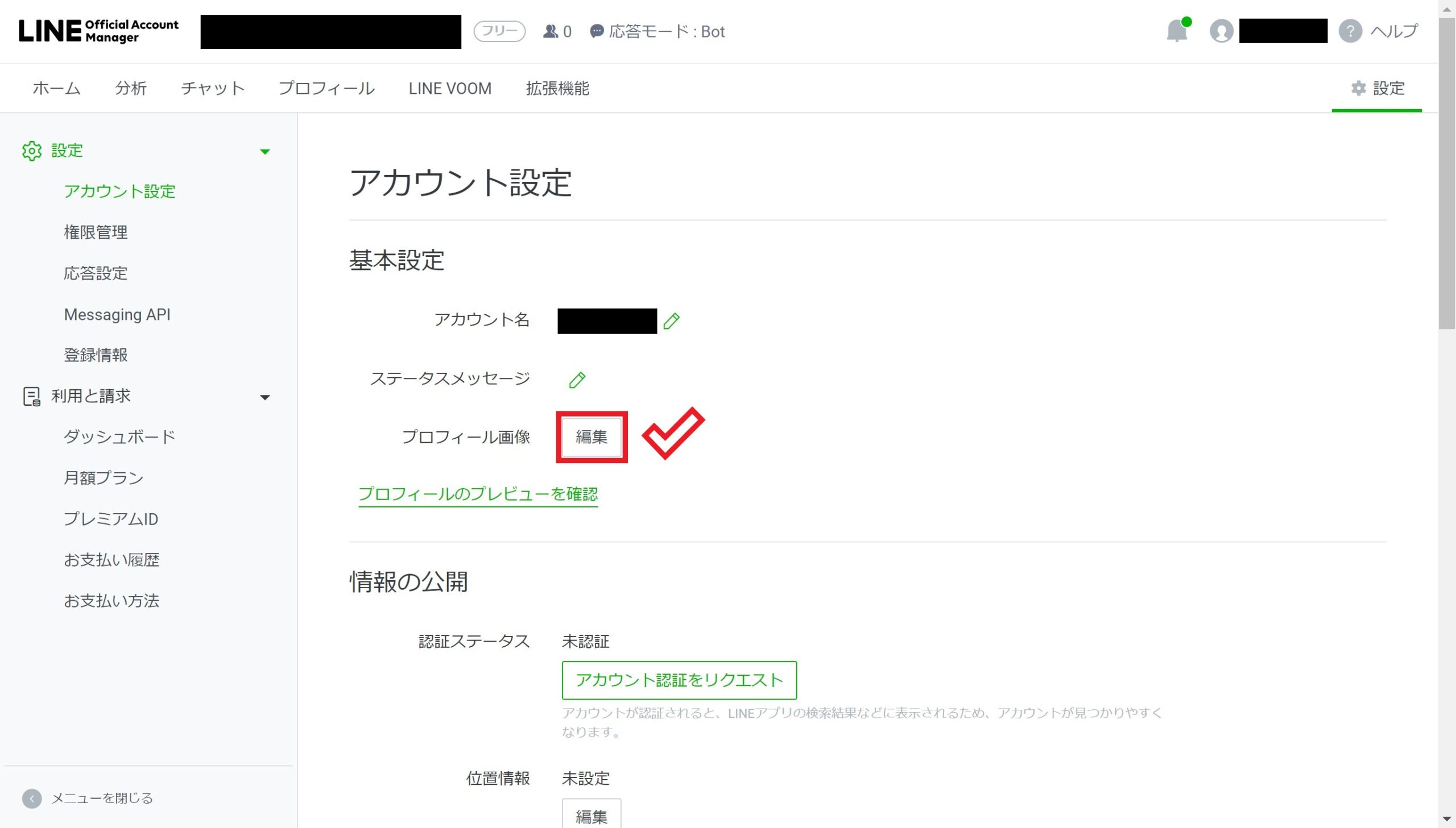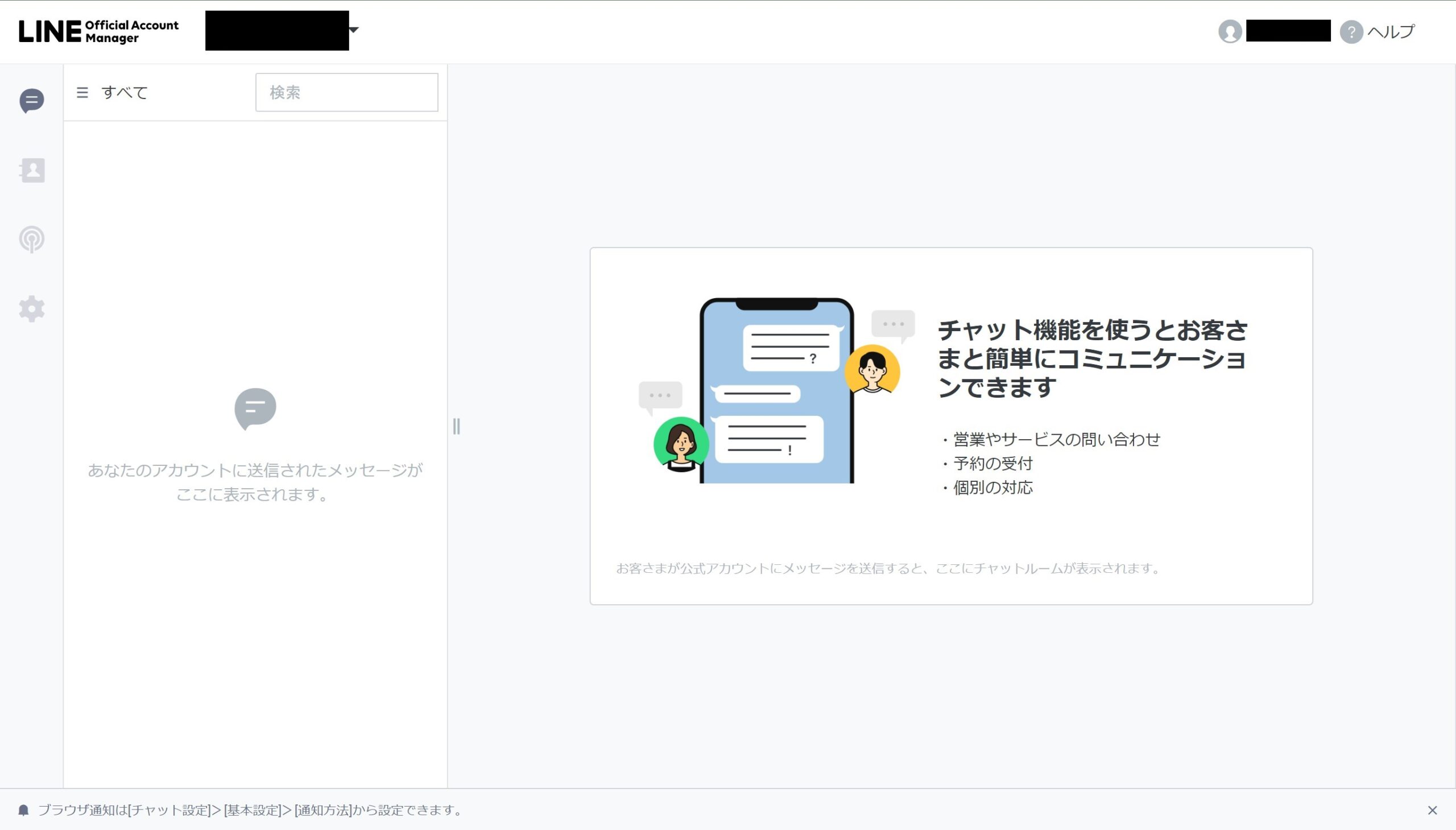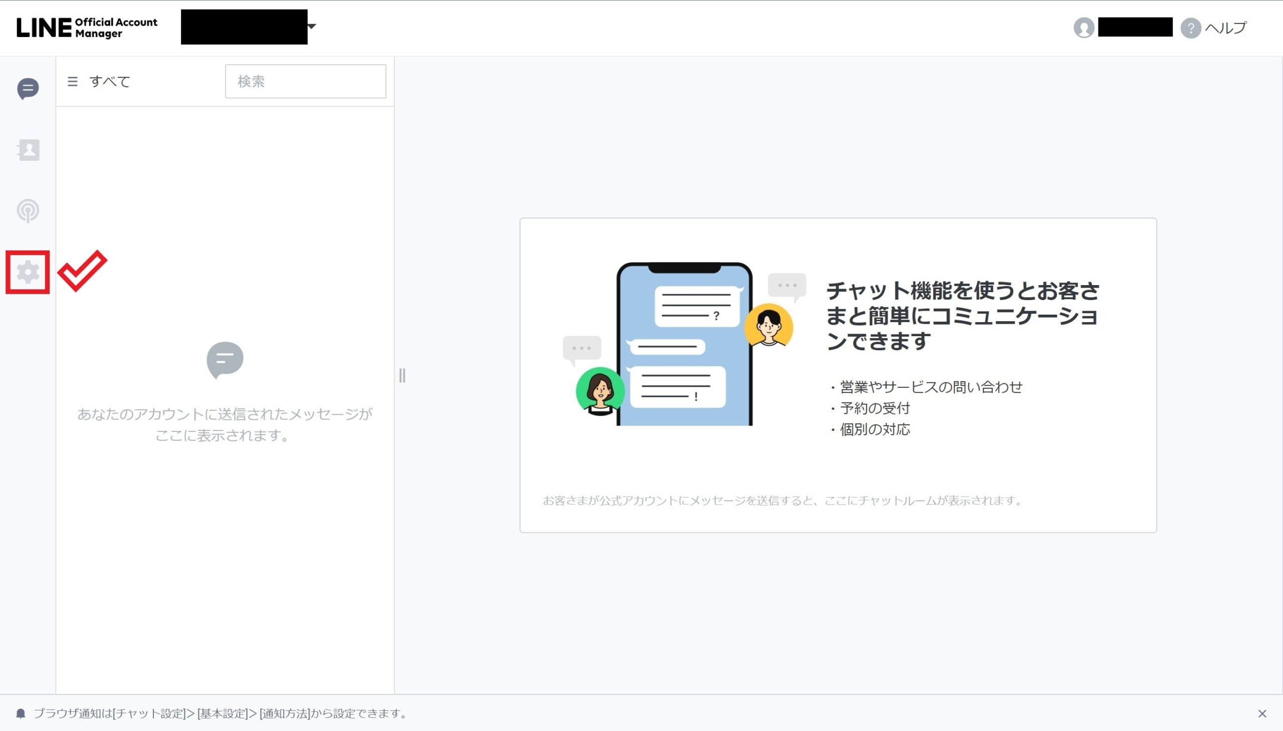 LINE公式アカウントの管理画面にアクセスしたら