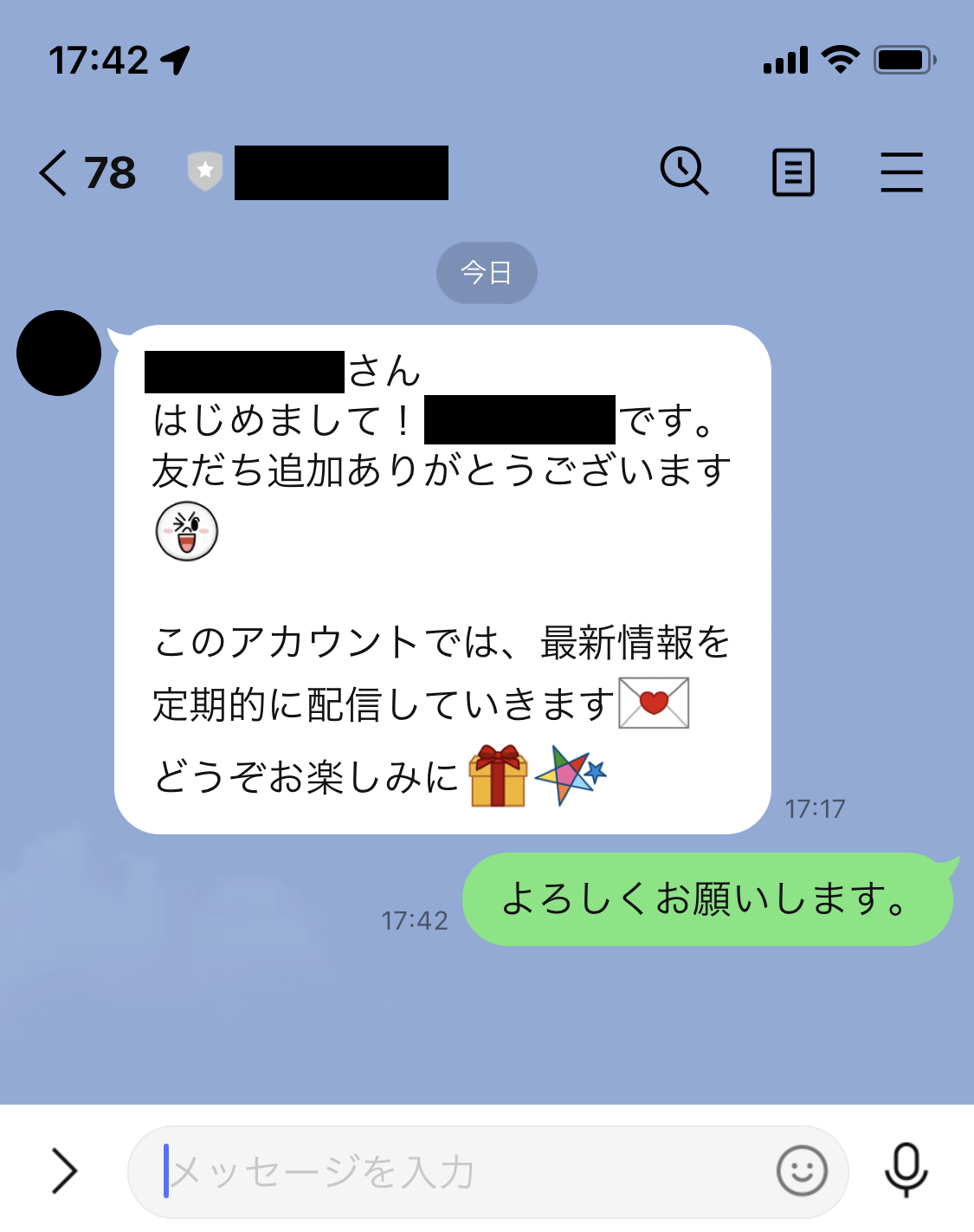 あいさつメッセージとは、初めてあなたが開設したLINE公式アカウントに友だち登録をしてくれた方へ送信される最初のメッセージです。