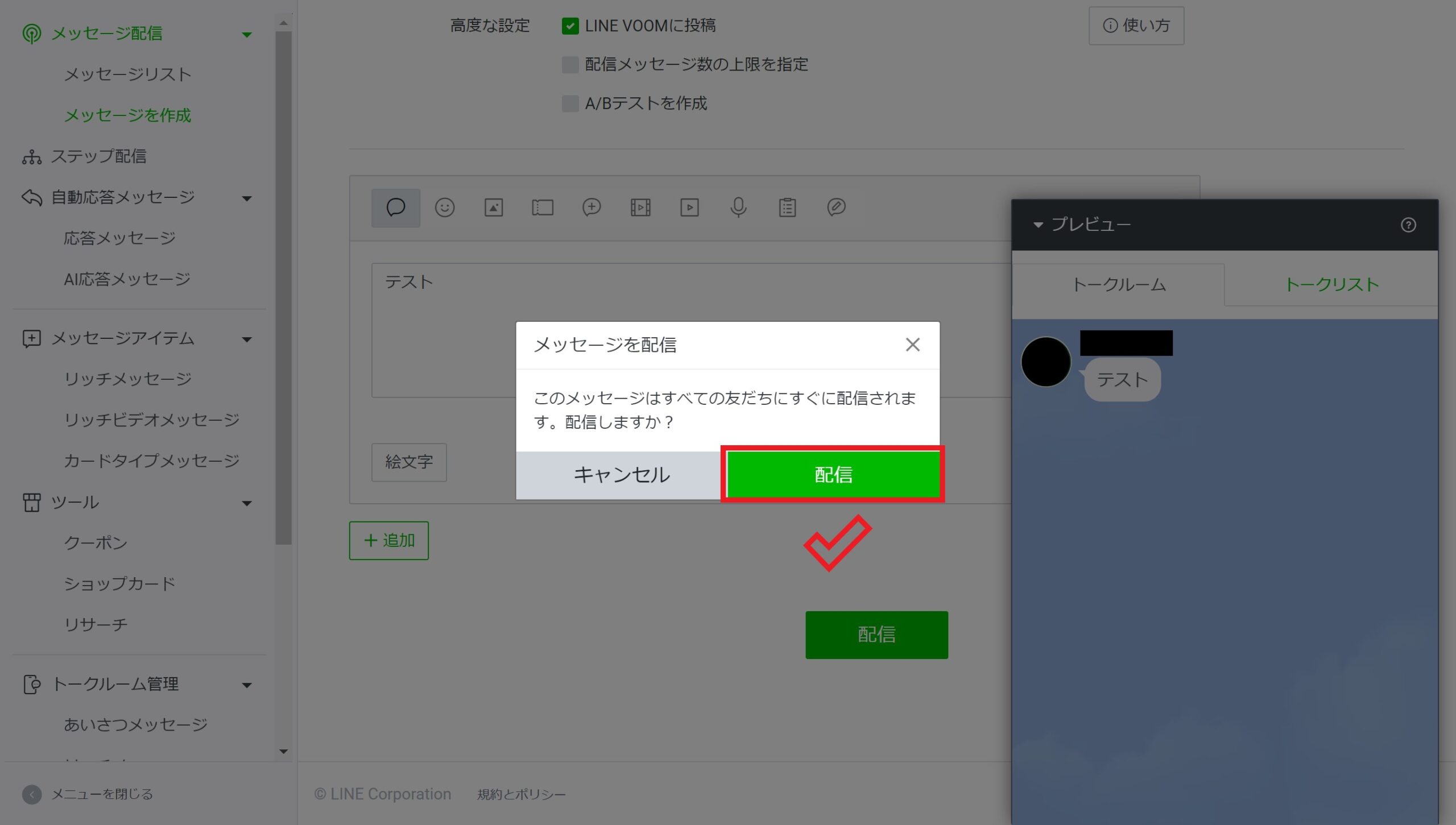 これでメッセージが全ての友だちに配信されました。