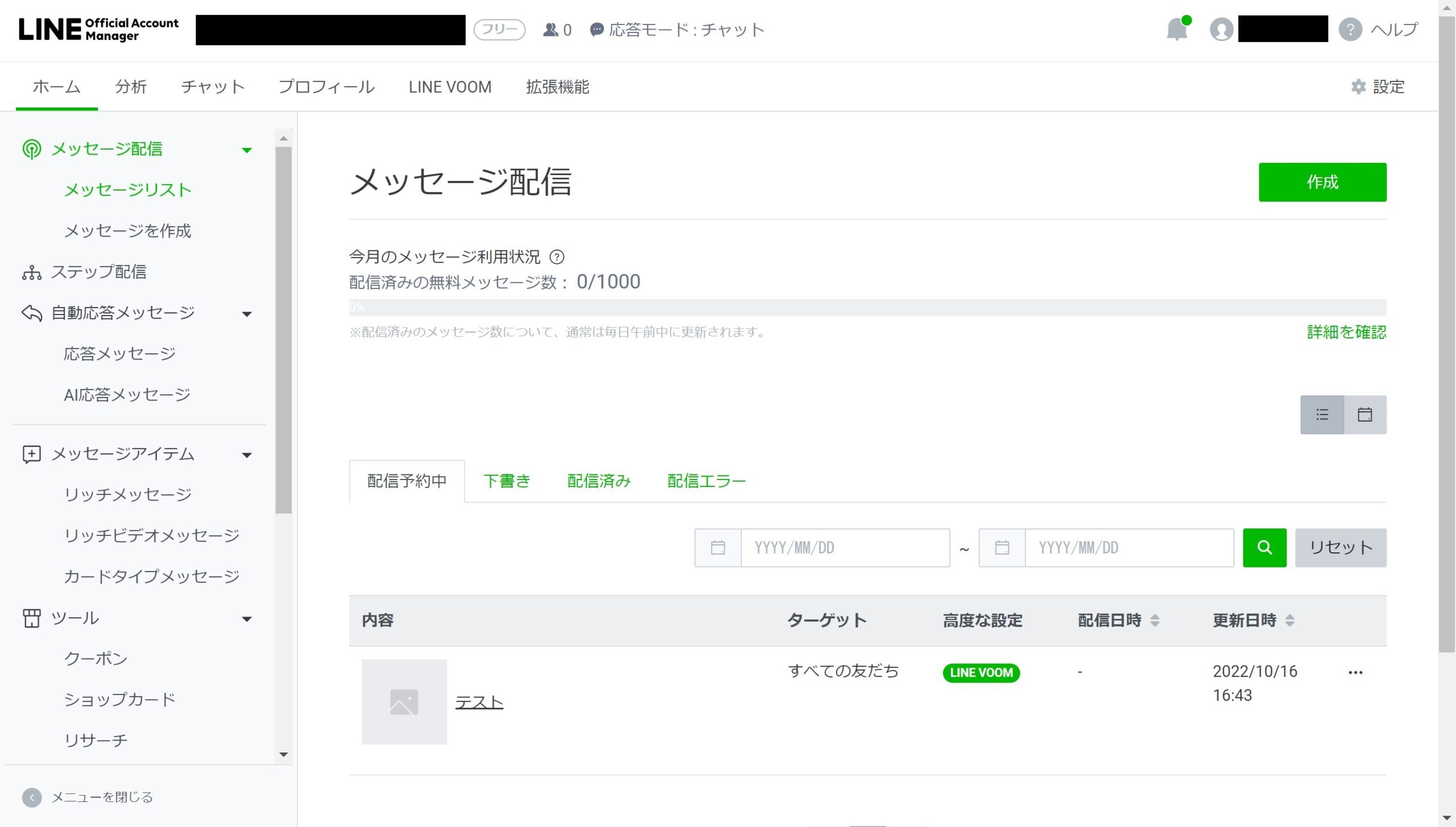 続いて、LINE公式アカウントで一斉メッセージを配信する方法を解説します。
