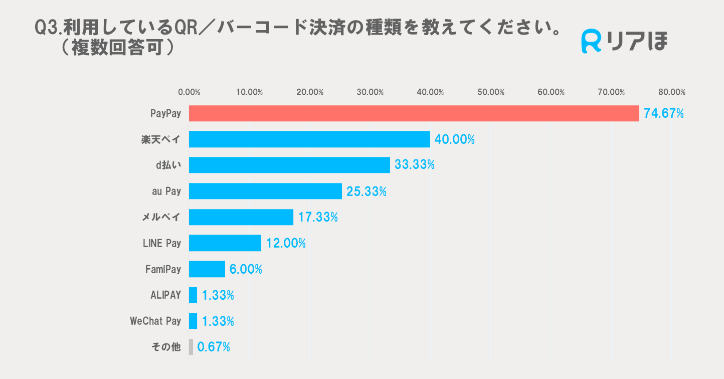 続く4位は「au Pay」25.33%、5位「メルペイ」17.33%で、PayPayの圧倒的な強さがわかります。